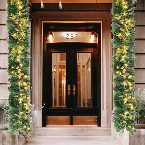 • The garland Christmas decorations with lights provide a cheerful and blissful ambiance to your home. Its lights perfectly complement the garland’s color and design while showcasing elegance. This also gives that realistic pine feels on breezy spring days.