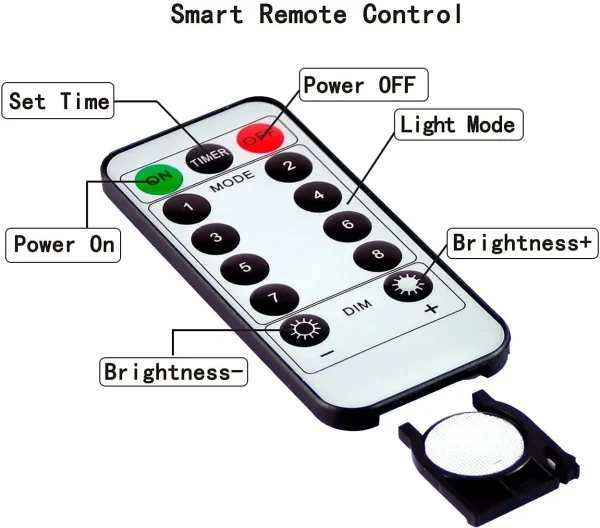The battery-powered warm white fairy lights come with a remote control so that you can adjust the brightness of the bulbs. All our fairy lights are waterproof, so they are perfect to use outdoors or indoors during any season. The remote control allows you to set when and how long you want your fairy lights on. Our holiday battery-operated fairy lights include a pack of 100-count warm white LED copper wire string lights and measure 33 feet.