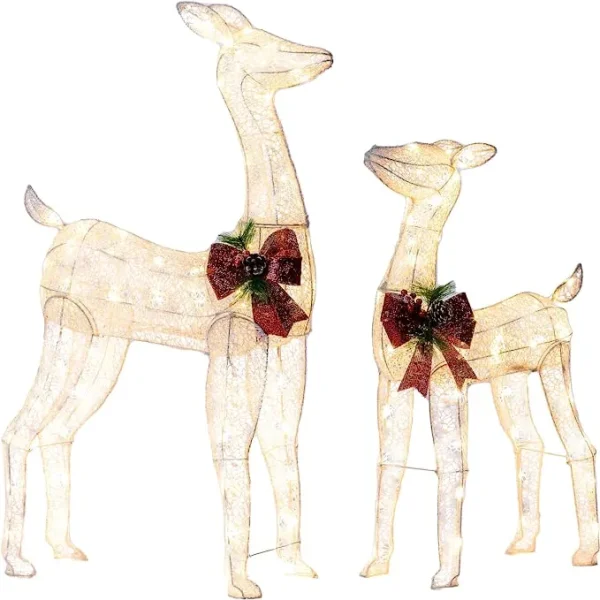 130 LED Warm White Reindeer Yard Decorations -Christmas Decoration Shop Tinsel Doe and Fawn LED Yard Lights 1 600x619 1