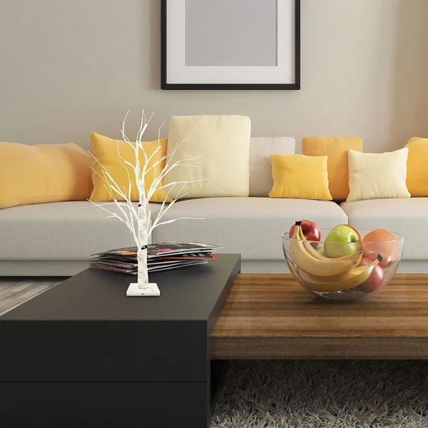 • Warm white LED birch tree has an overall height of 17 inches with a 4.3in * 4.3in base with 24 warm white LED lights