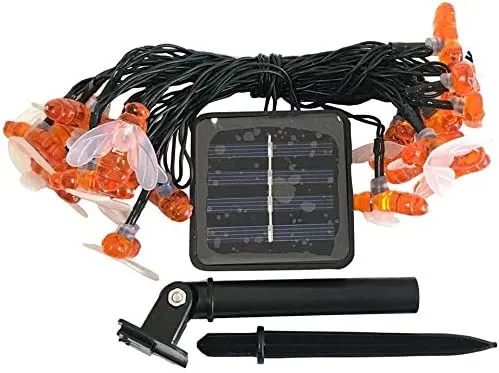 • The Honey Bee Swarm Simulator features a honey bees design with warm white lights. The honey bee string light measures 21ft and has 30 LED honey bees, 1 pcs ground spike included. It will bring a warm Christmas ambiance to your family for a happy atmosphere outside.