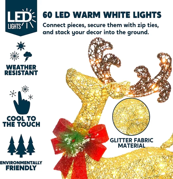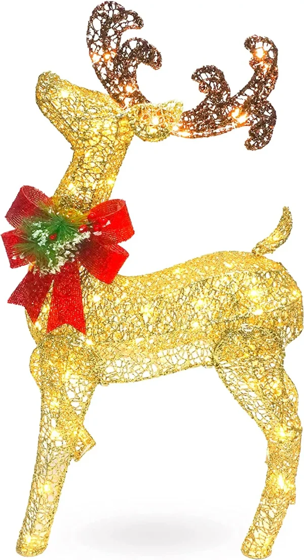 3ft 60 LED Light Up Yard Reindeer Buck Gold