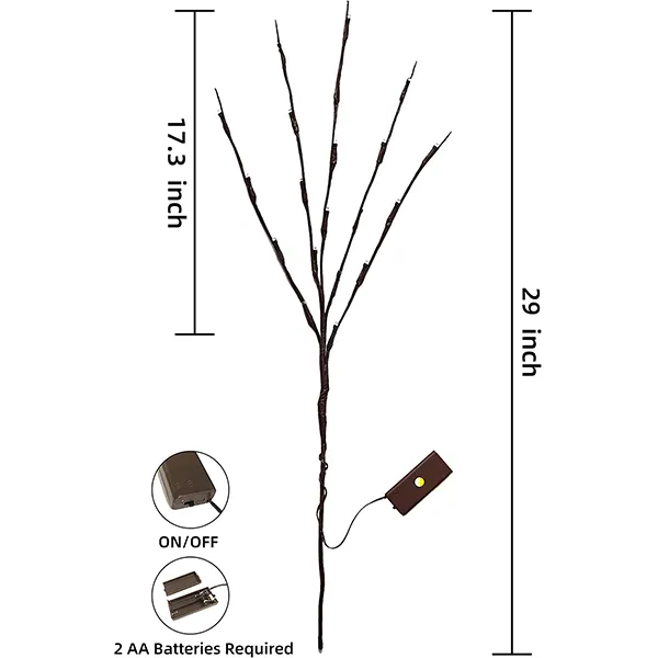 - CLASSIC DESIGN & VALUE PACK. The light features a willow twig branch design. The set comes with 3 packs. It measures 29 inches in length with 20 inches branches. The light will bring a warm Christmas ambiance to your family for a happy atmosphere inside or outside.