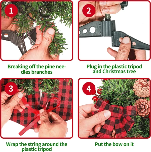 • Mini artificial Christmas tree with lights is designed with pre-installed lights with decorating kits, you will have all you need for your Christmas decoration.