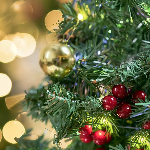 • Our Decorative Holiday mini tabletop Christmas trees include 24 inches Battery Powered Tabletop Mini Christmas Trees with 50 Multicolor String Lights. This comes with One Treetop Star, 12 Christmas Ball and 8 Bunches of Red Berries, and other ornaments.