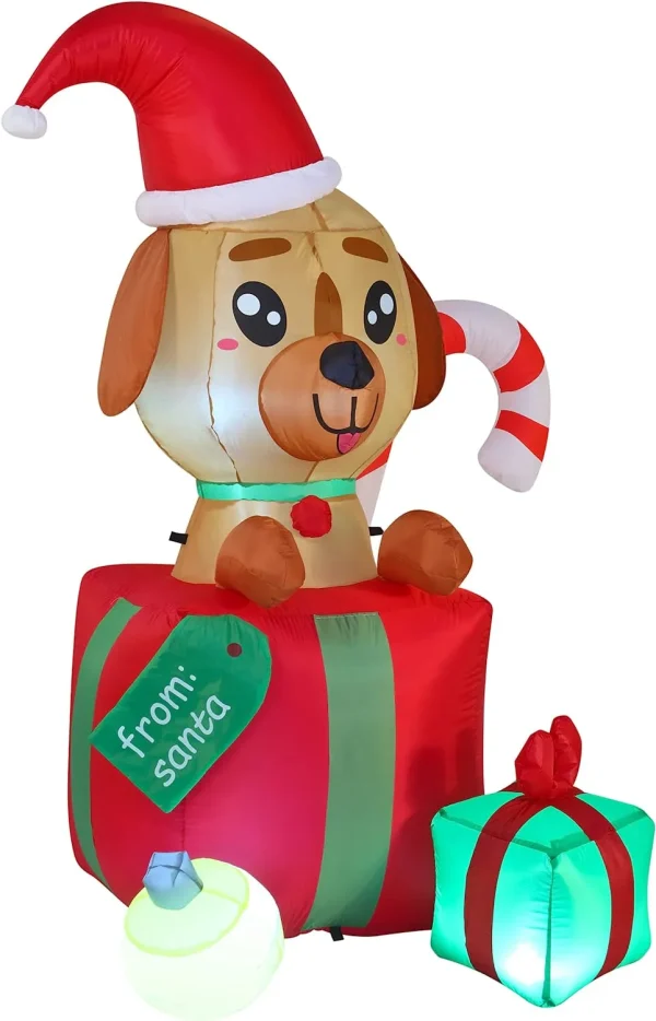 • Inflatable puppy includes 6 Feet Tall Christmas inflatable puppy In A Gift comes with an extended cord, ground stakes, fastened ropes, built-in sandbags, and a plug with UL certification.