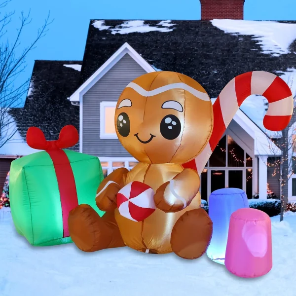 •Inflatable Christmas Decorations includes a 6 Feet Long Sitting Baby Gingerman Inflatable Christmas Decor and comes with an extended cord, ground stakes, fastened ropes, built-in sandbags, and a plug with UL certification.
