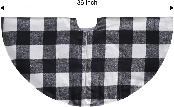 • Black and white buffalo plaid Christmas tree skirt includes a 48″ Thick Plaid White Buffalo Check Tree Skirt