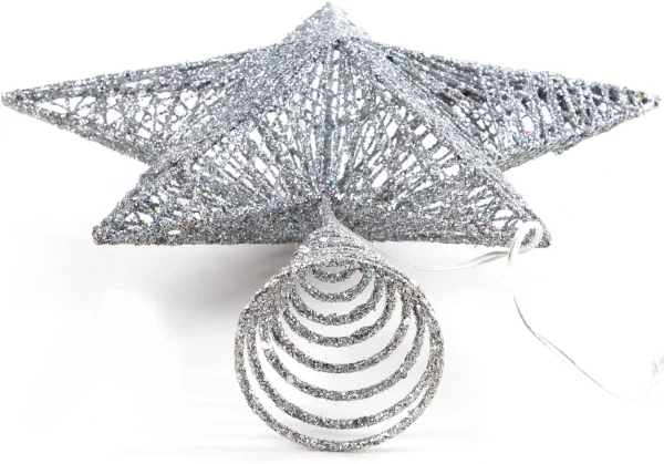 • This Star Tree Topper is perfectly coated in Silver with shining glitter around it. When the built-in White LED is lit, its glittery coat does shine brightly along with the lights.