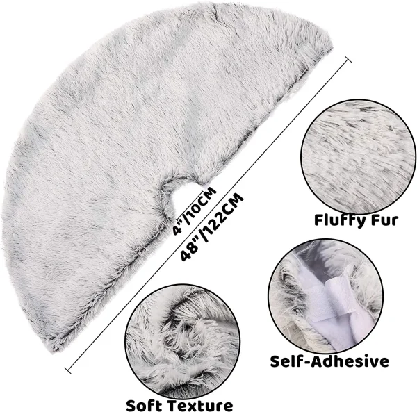 • Grey faux fur tree skirt comes with 48 Inches Grey Faux Fur tree skirt made with durable material which could reuse for next year’s Christmas decorations!