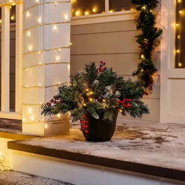 • Our Pre-Lit Urn Fillers with 35 battery-operated warm white LED lights, this decoration keeps the Christmas mood going all night long, energy efficient, and made to last many holidays!