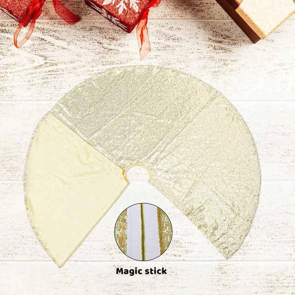 • Gold sequin Christmas tree skirt includes 48 Inches of Gold Christmas Sparkly Sequin Tree Skirt.