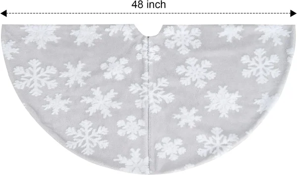 • Falling snow tree skirt pattern comes in 1 piece with a measurement of 48 inches.