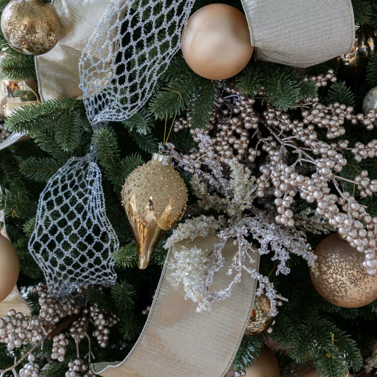 wreaths, accessorizing gift boxes, or seeking to add a quick splash of Holiday elegance to that space that needs just a bit more, a little ribbon can go a long way. Our sparkling Netted Ribbon offers that final touch that will instantly complement any color theme in style. 10 yards in length, the decorating possibilities are truly endless. Upgrade your décor arsenal today with a roll of versatile Netted Ribbon.